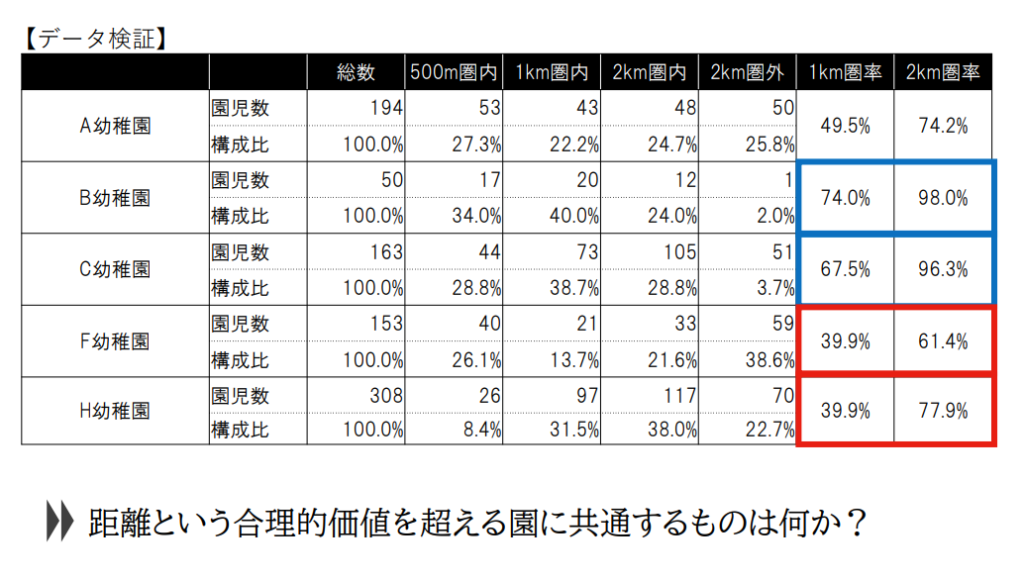 距離や料金といった“合理的価値”だけでは選ばれなくなりつつあり、篠田氏は「非合理的に選ばれる園」の条件をデータとともに示しました。